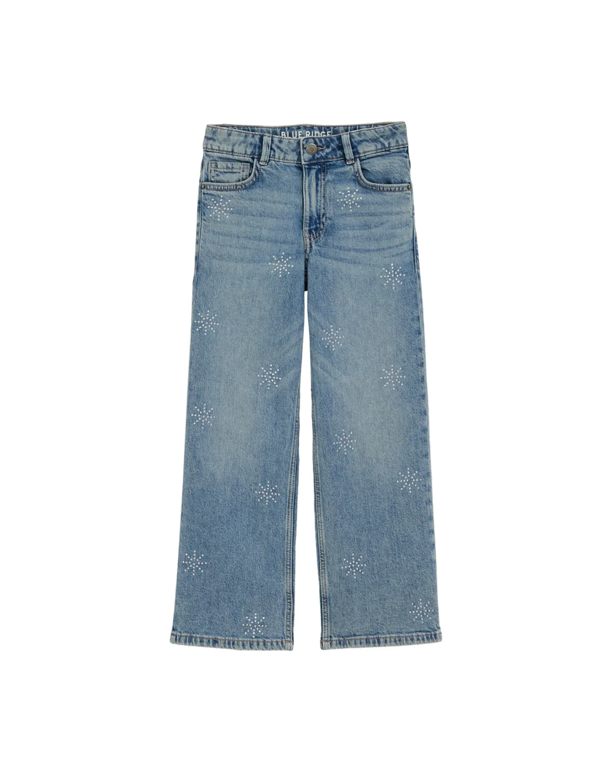 Design: Gevoerde zoom/rand, Ritssluiting, 5-pocket-style; Type sluiting: Ritssluiting; Materiaal: Denim; Motief: Effen; Details: Sierstenen; Extra's: Vaste grip, Riemlussen; Wassing: Light washed; Lengte: Lang/maxi; Pasvorm: Wide leg