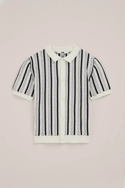 Cool én comfy. Dit overhemd heeft een regular fit met korte mouwen, een kraag en een knoopsluiting. De gebreide structuur met verticale strepen en het semi-opengewerkte detail geven ’m een luchtige, zomerse look.