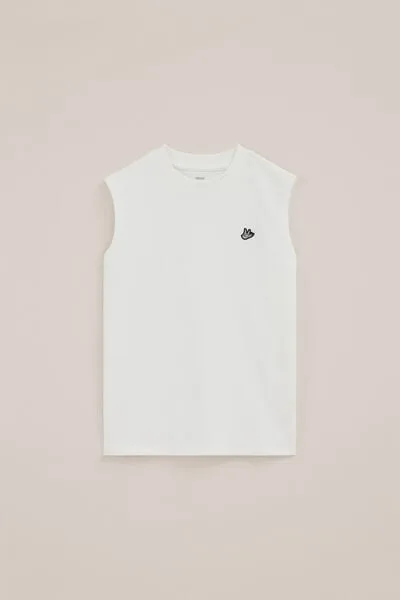WE Fashion – Jongens singlet met embroidery – Regular fit – Wit – Katoen –