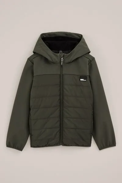 Specificaties: WE Fashion – Jongens softshell jack met capuchon – Regular fit – Legergroen –