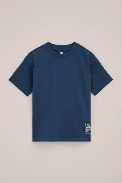 WE Fashion – Jongens T-shirt met patch – Oversized – Donkerblauw – Katoen –