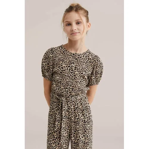 In één keer klaar met aankleden, dat kan met deze meisjes jumpsuit met panterprint van WE Fashion. De beige/zwart jumpsuit heeft korte mouwen met een subtiele pof, rechte pijpen en een comfortabele pasvorm. De elastische taille zorgt voor een mooie vorm, terwijl de glitterstrepen langs de stof voor een extra accent zorgen.Handige details voor elke dag Gemaakt van 100% viscose, een zachte en soepel vallende stof die prettig aanvoelt op de huid Korte pofmouwen en een ronde hals voor een luchtige, zomerse uitstraling Elastische taille en boorden voor extra draagcomfort en een aansluitende pasvorm bij schoolkinderen en tieners Drukknoopsluiting aan de voorkant, zodat aan- en uittrekken snel en makkelijk gaat Praktische zakken voor en riemlussen, voor wie er een extra ceintuur bij wil dragen Beige/zwart panterprint met glitterstrepen voor een opvallende uitstralingVoor drukke dagen vol plannenDeze jumpsuit past goed bij drukke dagen waarop het snel moet gaan. Geschikt voor school, een dagje weg of een feestje, zonder dat er lang nagedacht hoeft te worden over combinaties. Met sneakers of sandalen eronder is de outfit meteen compleet.WE Fashion voor jonge trendliefhebbersWE Fashion staat voor eigentijdse mode met aandacht voor pasvorm en draaggemak. De kinderkleding is ontworpen zodat bewegen, spelen en zichzelf zijn centraal staan. Zo biedt WE Fashion elke dag weer items die aansluiten op het leven van nu.Een praktische jumpsuit die dagelijks comfort combineert met een panterprint en glinsterende details.