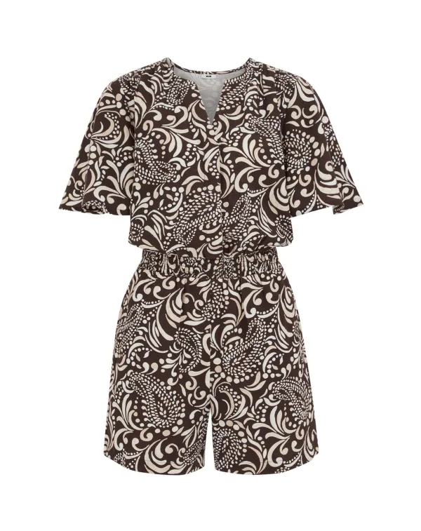 Specificaties: WE Fashion Jumpsuit donkerbruin / offwhite
