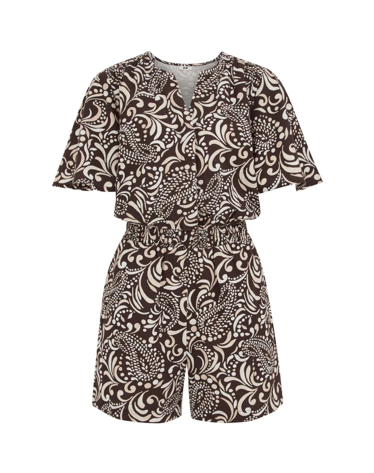 Design: Elastische inzetstukken; Type sluiting: Knoopsluiting; Materiaal: Katoen; Motief: Paisley; Details: Plooien; Extra's: All-over patroon; Lengte: Kort/mini; Pasvorm: Normale pasvorm; Armlengte: Kwartmouw