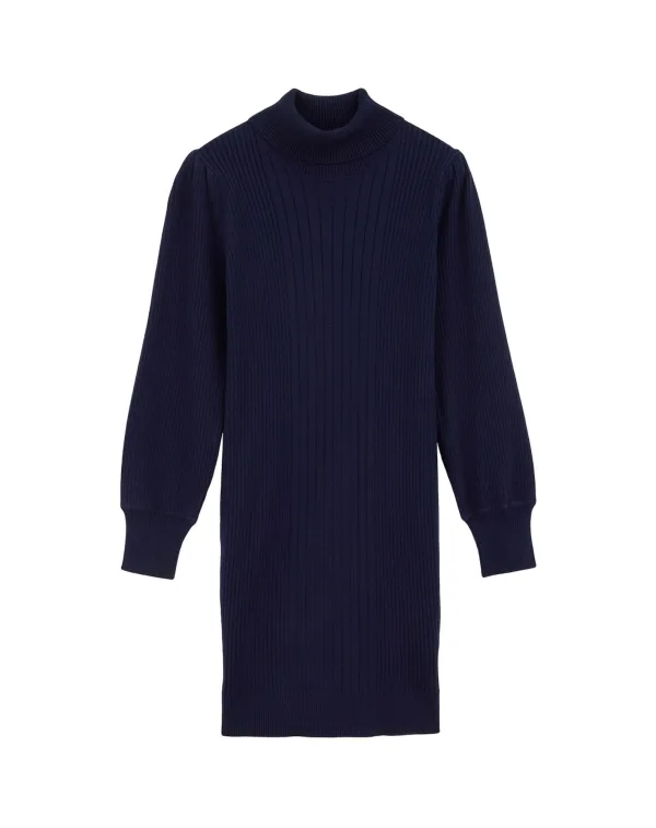 Design: Pofmouwen, Geribd ceintuurtje, Turn-down kraag; Materiaal: Knitwear; Halstype: Col; Motief: Effen; Details: Gedrapeerd; Extra's: Fully fashioned, Met textuur; Lengte: Knielengte; Pasvorm: Normale pasvorm; Armlengte: Lange mouw