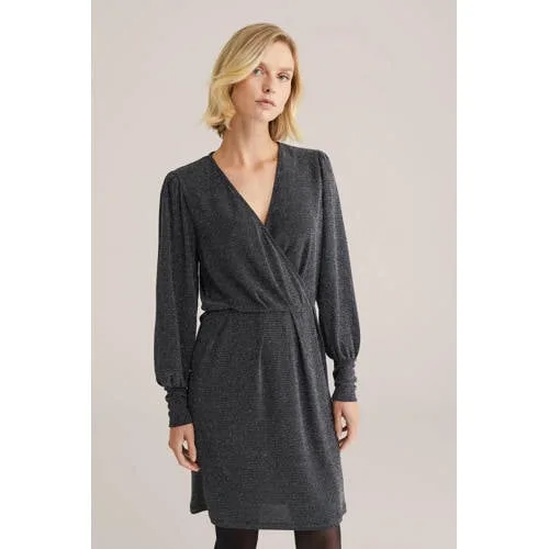 - De laagste prijs van WE Fashion - Dames jurk met glittergaren - Regular fit - Zwart - werd gevonden op 28 april 2026 09:07.