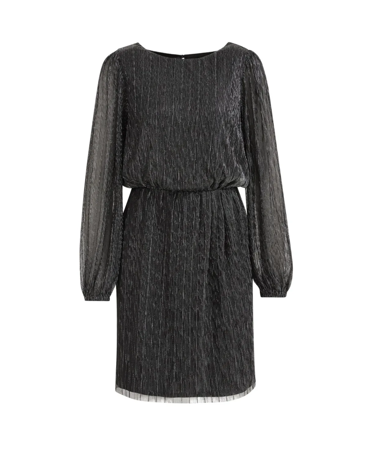 Design: Keyholesluiting; Type sluiting: Knoopsluiting; Halstype: Boothals; Motief: Mélange; Details: Cut-outs, Gedrapeerd, Plissé; Extra's: Glitterend; Lengte: Kort/mini; Snit: Getailleerd; Pasvorm: Normale pasvorm; Armlengte: Lange mouw