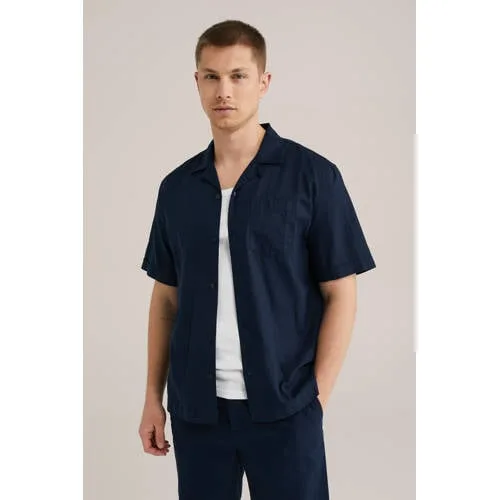 Dit overhemd van WE Fashion is voor heren. Gemaakt van linnen en katoen, het heeft een regular fit en korte mouwen. Met een klassieke kraag, knoopsluiting en borstzak, is het perfect voor een ontspannen uitstraling.