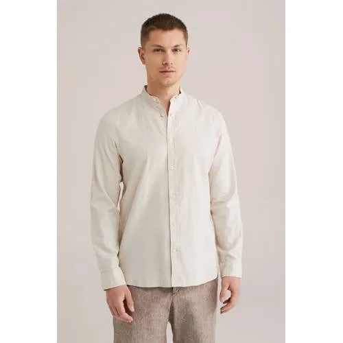 Een regular fit overhemd van een linnenmix met knoopsluiting. Het model heeft een mao-kraag en lange mouwen.