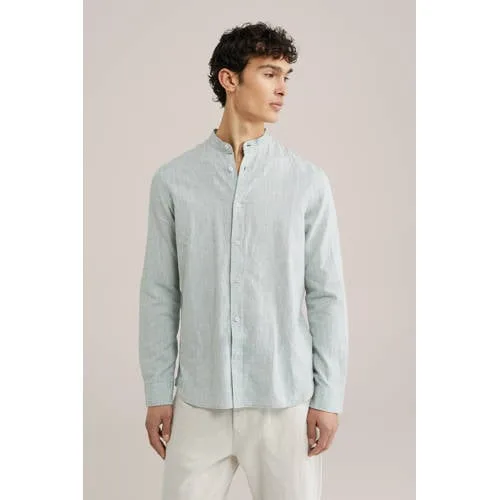 WE Fashion Heren easy care overhemd van linnenmix met mao-kraag