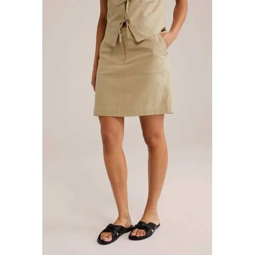 deze WE Fashion rok is gemaakt van linnen en heeft een korte lengte met rits- en knoopsluiting. De rok heeft zakken achter en zijzakken, waardoor je spullen makkelijk opbergt tijdens dagelijkse activiteiten.