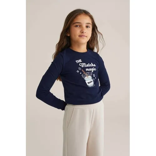 Deze longsleeve van WE Fashion heeft lange rechte mouwen en een ronde hals. De stof is gemaakt van stretchkatoen, dat zorgt voor een soepele en fijne pasvorm voor meisjes.