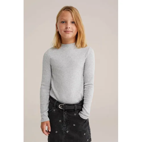 WE Fashion longsleeve rib gebreid grijs melange