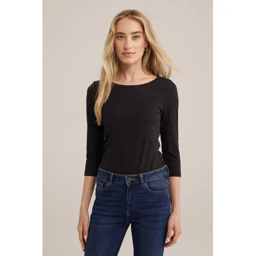 - Bij wefashion.com kun je WE Fashion - Dames T-shirt met driekwart mouwen - Zwart - Katoen - kopen voor slechts €19,00