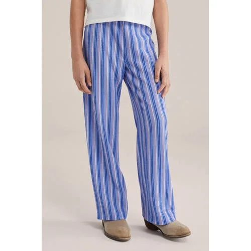 Speels, luchtig en klaar voor elke gewone dag, deze Meisjes wide leg broek van WE Fashion is gemaakt om makkelijk te dragen en eenvoudig te stylen. De broek heeft een comfortabele regular fit, een soepele stof en een elastische tailleband die zacht aansluit om het middel. De vrolijke streepprint in blauwtinten geeft elke outfit direct meer kleur en karakter.Comfort en design in één broek Wide leg model met lange pijpen voor een moderne, losse look Elastische tailleband voor snel en zelfstandig aan- en uittrekken Luchtige, soepelvallende stof die prettig om het lichaam beweegt Vrolijke meerkleurige streepprint met blauw als basiskleur Casual broek zonder zakken voor een strakke, rustige uitstraling Geschikt voor dagelijks dragen in de Daily-collectie van WE FashionVoor schooldagen, speelafspraken en weekendDeze wide leg broek past goed in de kledingkast van peuters, kleuters, schoolkinderen en tieners. Combineer met een eenvoudig T-shirt of top voor school, of met een fijne trui op frissere dagen. Sneakers eronder en de outfit is klaar voor een drukke dag vol spelen, leren en ontdekken.WE Fashion voor kinderenWE Fashion staat bekend om moderne kleding voor het hele gezin, met aandacht voor pasvorm en draaggemak. De kinderkleding is ontworpen met het dagelijks leven in gedachten, zodat kinderen vrij kunnen bewegen en ouders kunnen rekenen op betrouwbare kwaliteit en een eigentijdse stijl.Een luchtige en speelse basisbroek die eenvoudig te combineren is en graag elke dag uit de kast wordt gepakt.