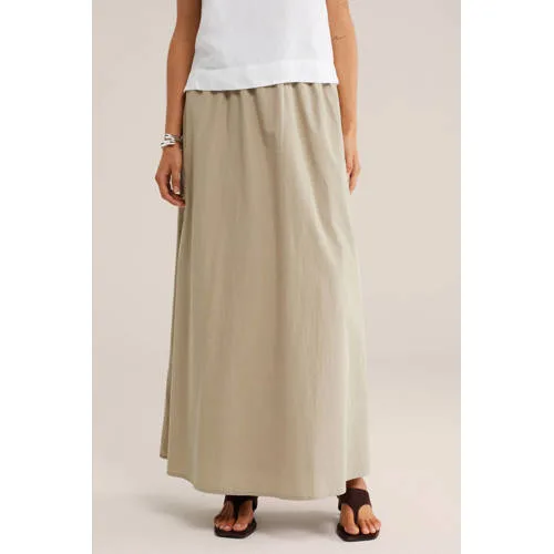 Op dagen waarop je outfit gewoon makkelijk en relaxed mag zijn, is deze grijsbruine maxi rok van 100% katoen een praktische basis. De rok valt lang, heeft een regular fit en volgt soepel je bewegingen. De elastische tailleband zorgt voor comfort, zonder dat je hoeft te spelen met knopen of ritsen. De ingetogen grijsbruine kleur maakt het een rustige toevoeging aan je garderobe, passend bij veel tops en truien. Comfortabele pasvorm voor elke dag Lang model, valt als een maxi rok voor een bedekte look Regular fit, biedt ruimte zonder wijd te ogen Elastische tailleband voor snel en comfortabel aankleden Zijzakken voor het wegstoppen van kleine essentials Plooidetails zorgen voor een soepele valling Gemaakt van 100% katoen, met katoenen voering voor extra draaggemak Effen grijsbruine kleur, makkelijk te combineren met basic en opvallende tops Onderdeel van de Daily collectie, geschikt voor alledaags gebruik in het voorjaarEenvoudig te stylen maxi rokDeze rok past goed bij een eenvoudig T-shirt, een luchtige blouse of een gebreide trui. Sneakers, sandalen of loafers eronder en je bent klaar voor een gewone werkdag, een middag in de stad of een ontspannen moment thuis. De soepele plooien en zachte stof geven elke combinatie een verzorgde uitstraling, zonder dat het veel moeite kost. WE Fashion als vertrouwde basis in je kastWE Fashion staat voor toegankelijke mode met een moderne stijl voor elke dag. De collecties zijn afgestemd op een druk leven waarin je er verzorgd uit wilt zien, maar ook comfortabel wilt kunnen bewegen. Met deze maxi rok haal je een garderobestuk in huis dat past bij die visie, met heldere lijnen en materialen die prettig aanvoelen. Een rustige rok waar je in het voorjaar en ver daarna veel aan hebt.