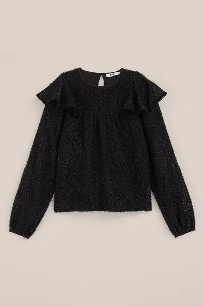 WE Fashion – Meisjes blouse met structuur – Regular fit – Zwart –