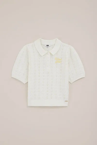 WE Fashion – Meisjes gebreide polo met open structuur – Regular fit – Gebroken wit – Katoen –