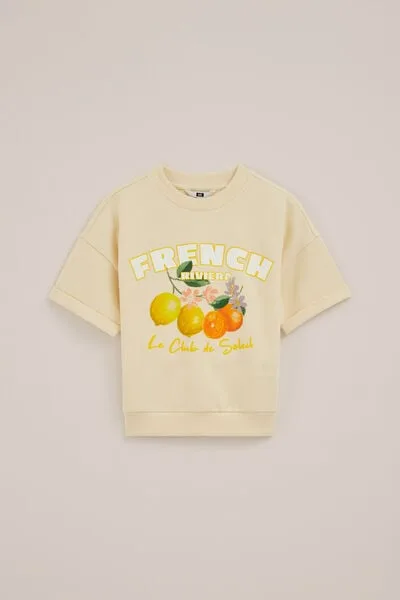 WE Fashion – Meisjes oversized sweater met opdruk – Oversized – Lichtgeel – Katoen –
