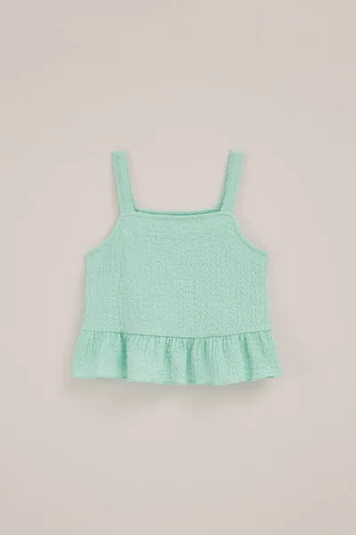 Specificaties: WE Fashion – Meisjes singlet met structuur – Slim Fit – Turkoois –