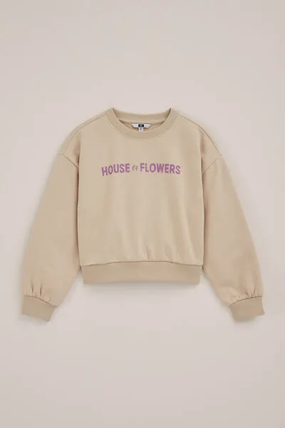 Dit wordt zeker een nieuwe favoriet. Deze sweater heeft een oversized fit, een ronde hals, ribgebreide lange mouwen, een subtiele print op het voorpand en een grote bloemenprint achterop.