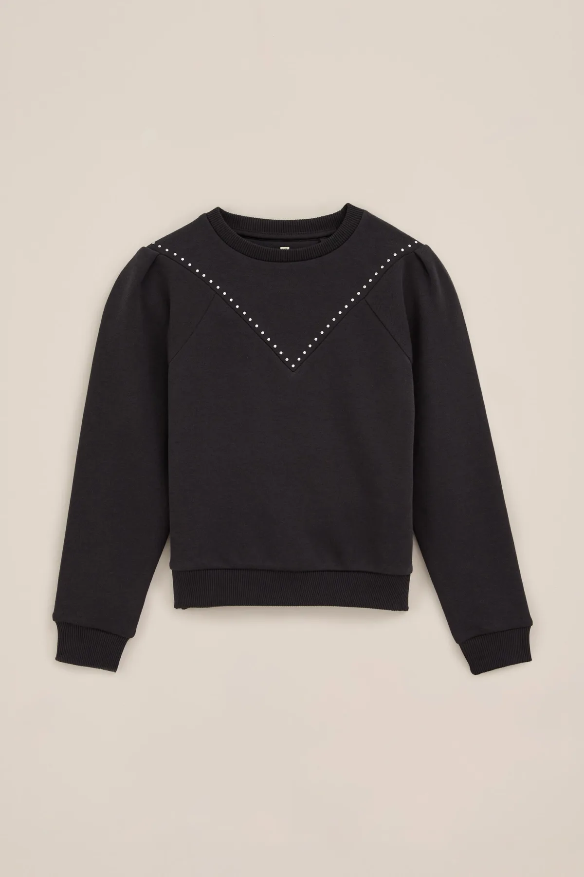 WE Fashion – Meisjes sweater met studs – Regular fit – Donkergrijs – Katoen –