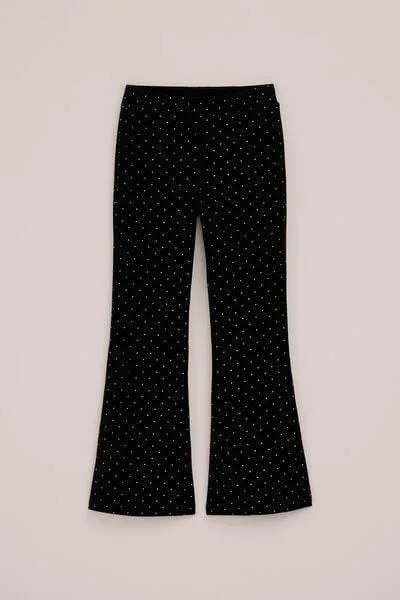 WE Fashion – Meisjes velvet flared legging met studs – Regular fit – Zwart –