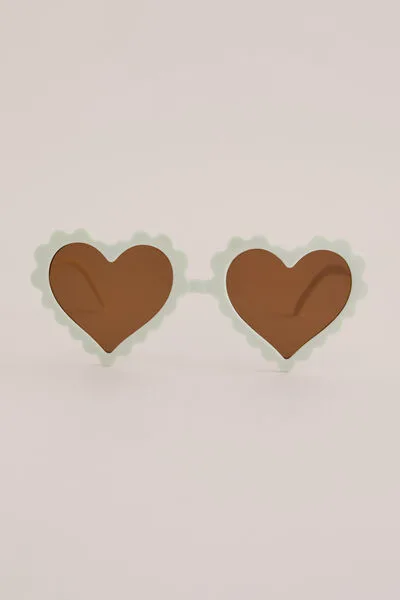 Dit is er eentje die vaak mee op foto gaat. Deze zonnebril heeft een off-white hartvormig montuur met kartelrand, bruine glazen, UVA/UVB-bescherming en een microfiber hoesje. Zo fleurt je outfit pas echt op.