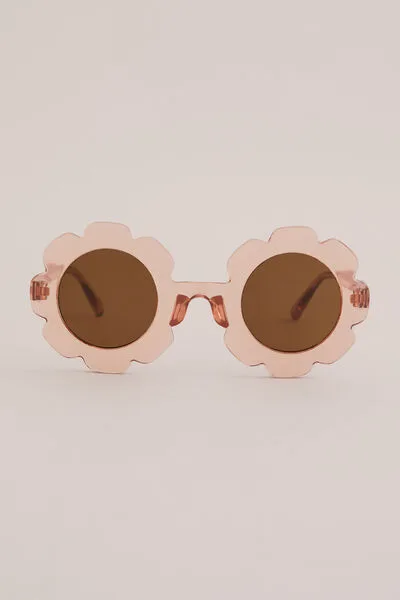 Voor meisjes die van bloemen én mode houden. Deze zonnebril heeft een rond transparant roze frame met bloemdetails, bruine glazen, UVA/UVB-bescherming en een microfiber hoesje. Een topper voor verjaardagsfoto’s en vakanties.