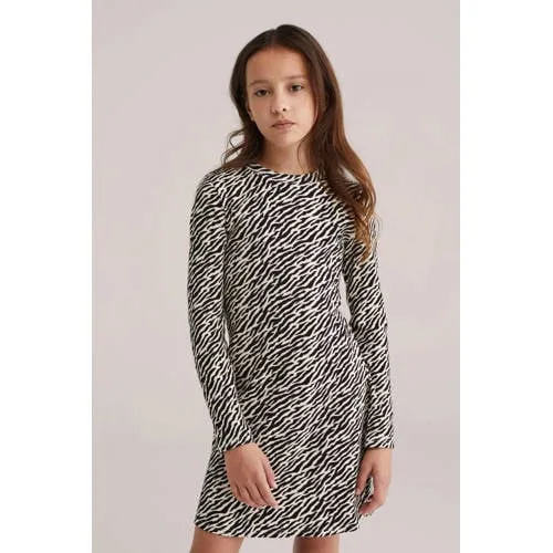 Deze WE Fashion meisjes jurk dierenprint is een comfortabele basis voor alledaagse momenten. De jurk heeft een zwart met beige dierenprint die direct opvalt, zonder te druk te zijn. Dankzij de ronde hals en rechte lange mouwen zit de jurk prettig rond schouders en armen. De midi lengte valt gemiddeld rond de knie, wat zorgt voor voldoende bewegingsvrijheid tijdens spelen en bewegen.Stijlvolle details voor elke dag Midi jurk met zwart beige dierenprint voor een speelse uitstraling Gemaakt van vijfennegentig procent katoen en vijf procent elastaan voor een zachte stretch Rechte lange mouwen voor extra bedekking op koelere dagen Ronde hals zonder sluiting voor makkelijk aan en uit trekken Geen zakken voor een rustig silhouet Geschikt om los te dragen of met een legging eronderComfortabel in verschillende situatiesMet de soepele stof en de elastische pasvorm beweegt de jurk eenvoudig mee. Dit maakt de jurk geschikt voor schooldagen, familiebezoeken of een ontspannen dag thuis. De midi lengte combineert goed met sneakers of laarsjes.Betrouwbare stijl van WE FashionWE Fashion ontwerpt kleding met aandacht voor pasvorm en draagcomfort. De collectie voor meisjes sluit aan bij dagelijkse momenten, met herkenbare prints en praktische modellen. Zo ontstaat kleding waar vaak naar wordt gegrepen in de kast.Een veelzijdige jurk die comfort en een herkenbare print samenbrengt in één draagbaar ontwerp.