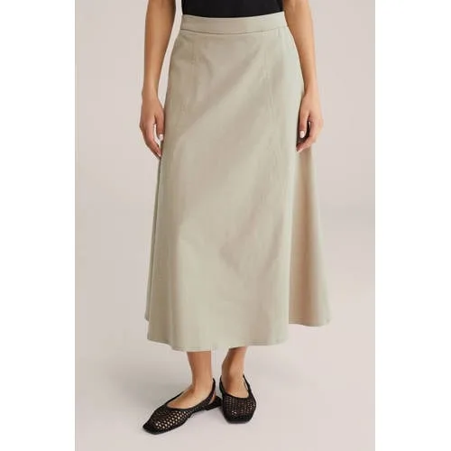 Deze beige dames midi rok is een fijne basis voor elke dag. De rok valt tot halverwege de kuit en heeft een subtiele A-lijn, waardoor er een mooie, vloeiende beweging ontstaat bij iedere stap. Dankzij lyocell en katoen voelt de stof soepel aan op de huid en draagt de rok prettig op warme dagen. De regular waist sluit comfortabel aan en de elastische tailleband aan de achterkant zorgt voor extra bewegingsvrijheid.Verfijnde details voor dagelijks dragen Midi lengte met A-lijn silhouet voor een vrouwelijke, zwierige look Regular waist met elastische tailleband achter voor extra comfort Twee zijzakken voor handige opbergruimte Zachte, soepele stof met lyocell en katoen, ideaal voor zomerse dagen Effen beige kleur die eenvoudig te combineren is met tops en T-shirts Onderdeel van de Daily collectie, geschikt voor zowel werk als vrije tijdGemakkelijk te stylen in jouw garderobeDeze rok laat zich snel stylen. Combineer met een luchtige blouse en sandalen voor een werkdag, of draag er een eenvoudig T-shirt en sneakers bij voor een ontspannen weekendlook. De neutrale beige kleur past goed bij tinten als wit, zand, marine of zachtgroen.Stijl volgens WE FashionWE Fashion staat voor toegankelijke mode met een moderne uitstraling. De collecties zijn ontworpen met aandacht voor pasvorm en draaggemak, zodat je de stukken vaak en lang kunt dragen. Met deze rok kies je voor een betrouwbaar item dat mooi aansluit op de rest van je garderobe.Een veelzijdige midi rok waarmee je zonder moeite een verzorgde, zomerse outfit samenstelt.
