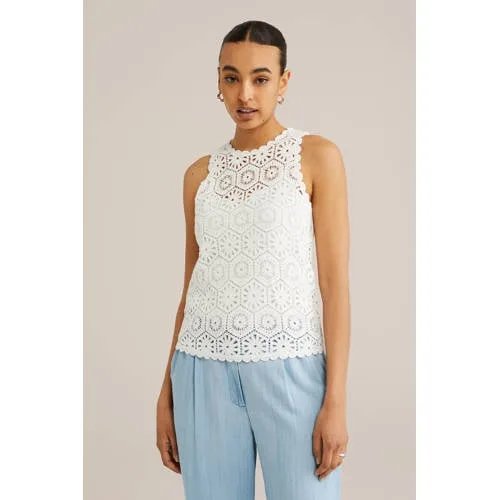 Deze top van WE Fashion is gemaakt van 100% katoen en heeft een ronde hals met mouwloos model. De top heeft gehaakte details, daardoor krijgt je outfit iets extra’s voor iedere dag.