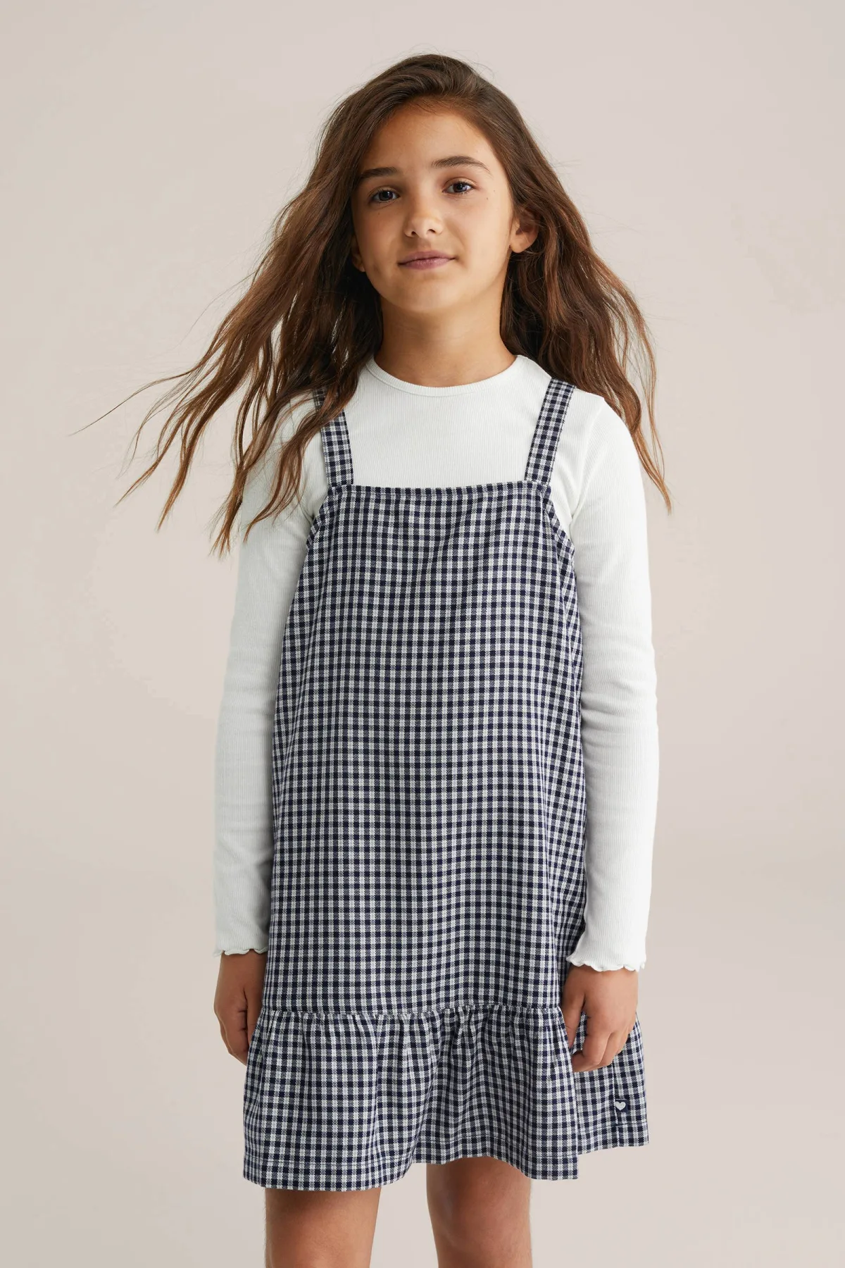 Design: Gevoerde zoom/rand, Rechte zoom; Halstype: Carréhals; Motief: Geruit; Soort bandjes: Normale bandjes; Details: Volant, Gedrapeerd; Extra's: All-over patroon, Buigzame grip; Lengte: Kort/mini; Pasvorm: Normale pasvorm; Armlengte: Mouwloos