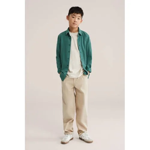 Voor een relaxte, maar verzorgde outfit is dit WE Fashion overhemd voor jongens een fijne basis voor elke dag. Het gebreide overhemd in de kleur Dark Army heeft een regular fit en voelt soepel aan, waardoor er genoeg bewegingsvrijheid is om te spelen, ontdekken en onderweg te zijn. De klassieke kraag en knoopsluiting geven een nette uitstraling, terwijl het comfortabele breisel juist zorgt voor een casual effect.Praktische details voor dagelijks draagplezier Gebreid overhemd met regular fit, ideaal voor dagelijks gebruik Klassieke kraag en volledige knoopsluiting voor een verzorgde look Lange mouwen met verstelbare boord en knoopsluiting voor een betere pasvorm rond de pols Effen Dark Army kleur, makkelijk te combineren met jeans, joggers of chino Zonder borstzakken voor een rustige en moderne uitstraling Wordt geleverd als enkel stuk, handig om gericht een favoriet item toe te voegen aan de kastVan schooldag tot familiedinerDit overhemd past net zo goed bij een gewone schooldag als bij een etentje of feestje. Open gedragen over een T-shirt creëert het een ontspannen laagje, dichtgeknoopt oogt het meteen wat netter. De gebreide stof maakt het geschikt voor koelere dagen, terwijl de regular fit ruimte laat voor een extra laag eronder.WE Fashion als vertrouwde keuzeWE Fashion staat bekend om toegankelijke kleding met een moderne, draagbare stijl voor het hele gezin. De collectie voor jongens is ontworpen met aandacht voor pasvorm, comfort en eenvoudige combinaties, zodat elk item vaak en met plezier gedragen kan worden.Een veelzijdig overhemd dat moeiteloos meegaat in het ritme van alledag.