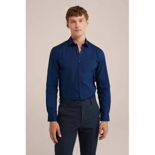 Onmisbaar in jouw garderobe. Dit slim fit overhemd, gemaakt van een katoenmix met stretch, heeft een kent-kraag, knoopsluiting en lange mouwen. Het item is erg zacht, draagt comfortabel en combineert gemakkelijk met andere kledingstukken. De stof is behandeld met een geavanceerde antibacteriele coating, die zowel vlekken als geurtjes bestrijdt (finish blijft 20 wasbeurten effectief)
