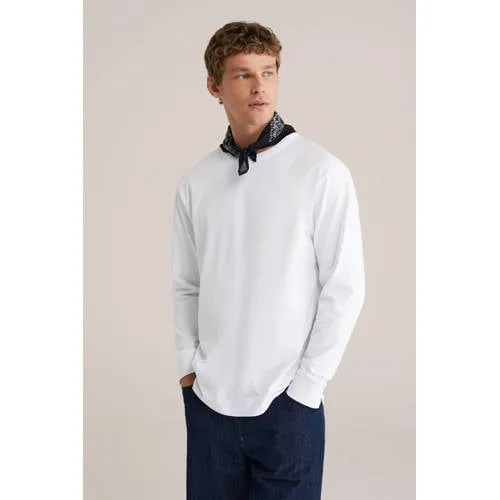 Deze WE Fashion longsleeve heeft een oversized pasvorm en lange mouwen. Deze longsleeve heeft een ronde hals. Dit model is gemaakt van 100% katoen en draagt prettig de hele dag.