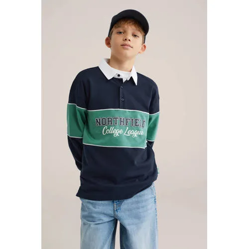 Ga voor een relaxte, sportieve look met deze WE Fashion polo jongens. De polo heeft een ruime, oversized fit die nonchalant valt en zorgt voor een moderne uitstraling. De klassieke polokraag, de halve knoopsluiting en de lange mouwen met ribboorden geven een knipoog naar retro sportkleding. Dankzij de donkerblauwe, groene en witte colourblock opbouw valt de polo direct op, terwijl de 'Northfield College League' print op het voorpand alles samenbrengt tot een college stijl.Details die het verschil maken Oversized pasvorm voor een comfortabele, losse look Lange mouwen met geribde boorden voor een goede aansluiting bij de polsen Klassieke polokraag met halve knoopsluiting Colourblock design in donkerblauw, groen en wit 'Northfield College League' print op het voorpand Gemaakt van 100% katoen, zacht en prettig voor elke dag Meerkleurige print zonder zakken, voor een rustig silhouetCasual outfit met een retro sportgevoelDeze polo is geschikt voor schooldagen, weekenduitjes of een bezoek aan familie. Het ontwerp sluit goed aan bij een sportieve, casual stijl waar hij zich gemakkelijk in voelt.WE Fashion, vertrouwde stijl voor elke dagWE Fashion staat bekend om toegankelijke mode met een actuele uitstraling. De collecties voor kinderen zijn ontworpen met aandacht voor pasvorm en draaggemak, zodat hij zich de hele dag vrij kan bewegen.Een eigentijdse polo met vintage knipoog, klaar voor alledaagse avonturen.