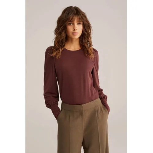 Hoe zou jij 'm stylen? Dit stijlvolle T-shirt is gemaakt van glittergaren en heeft lange mouwen, een ronde hals, mouwboorden en elegante pofdetails bij de schouders.