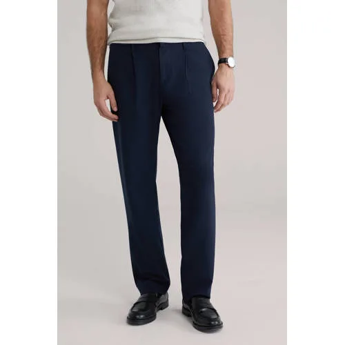 Geef je dagelijkse outfit een verzorgde upgrade met deze donkerblauwe WE Fashion chino voor heren. De 'Blaze' broek heeft een regular fit en is gemaakt van een soepele smart twill kwaliteit, waardoor hij er netjes uitziet en toch relaxed aanvoelt. De diepe heavy blue kleur laat zich makkelijk combineren met shirts, truien of een colbert.Verzorgde chino met comfortabele regular fit Regular fit: rechte pasvorm die niet te strak en niet te wijd valt Smart twill kwaliteit: voelt glad aan en heeft een nette uitstraling Gemaakt van polyester, viscose en elastaan voor comfort en lichte stretch Rits- en knoopsluiting aan de voorkant Met steekzakken voor en paspelzakken achter Effen donkerblauwe kleur die past bij zowel casual als meer geklede looks Chino model, ideaal voor werk, etentjes en vrije tijdVan werkdag tot weekendDeze chino is geschikt voor verschillende momenten. Combineer met een overhemd en nette schoenen voor kantoor, of draag er een T-shirt en sneakers bij voor een meer relaxte dag. De regular fit geeft genoeg bewegingsruimte zonder rommelig te ogen, zodat de broek passend is voor zowel formele als informele gelegenheden.WE Fashion als vertrouwde basisWE Fashion staat bekend om moderne basics en nette items die goed onderling te combineren zijn. De collecties worden ontworpen met aandacht voor pasvorm en draaggemak, zodat je lang plezier hebt van elk kledingstuk. Met deze chino haal je een betrouwbare basis in huis waar je vaak naar zult grijpen.Een nette, donkerblauwe chino die moeiteloos meebeweegt met jouw dag.