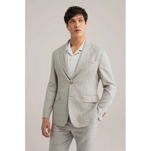 WE Fashion regular fit colbert met linnen en wol zand