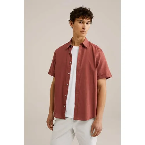 WE Fashion regular fit overhemd met linnen sheer sand Prijzen