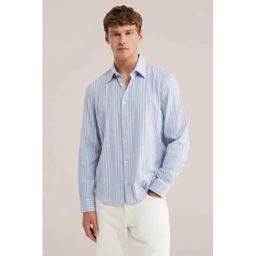 WE Fashion regular gestreepte casual overhemd lichtblauw