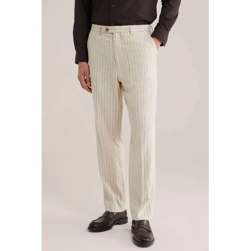 WE Fashion regular gestreepte pantalon met linnen beige Prijzen