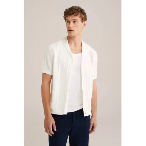 WE Fashion regular overshirt met ingebreid patroon ecru
