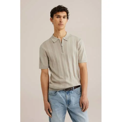 WE Fashion regular polo met ingebreid patroon beige Prijzen