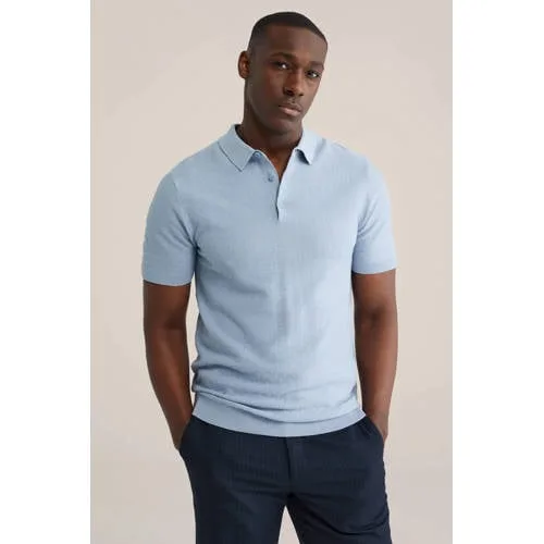 WE Fashion regular polo met ingebreid patroon blauw Prijzen