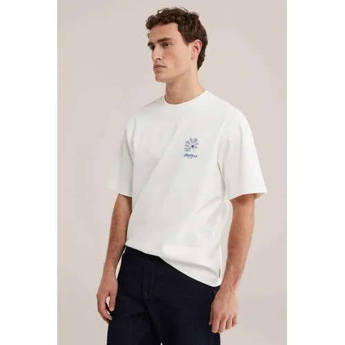 Voor wie graag iets stevigers draagt, is dit heavyweight heren T-shirt met backprint een praktische basis voor elke dag. De stof voelt compact en stevig aan, zonder stug te zijn. Het T-shirt heeft een loose fit, een ronde hals met rib en korte mouwen. Op de borst staat een subtiele blauwe bloem met 'Blue Ridge'-tekst en op de rug valt de grote postzegelprint op. In de kleur 'Snow White' combineert het makkelijk met al je favoriete jeans en shorts.Details die het verschil maken Gemaakt van 100% katoen voor een comfortabele, ademende feel op de huid Loose fit voor een ontspannen silhouet met genoeg bewegingsruimte Stevige, dikkere stof die solide aanvoelt Ronde hals met rib voor een nette afwerking die goed in vorm blijft Blauwe borstprint met bloem en 'Blue Ridge'-tekst voor een subtiele accentkleur Grote backprint in postzegelstijl die zorgt voor een grafische look aan de achterkantZo draag je dit T-shirtCombineer dit T-shirt met een straight fit jeans en sneakers voor een casual dagelijkse look. In de zomer staat het ook goed op een korte broek, eventueel met een open overhemd eroverheen als extra laag.WE Fashion als vertrouwde basis in je kledingkastWE Fashion ontwerpt moderne kleding die makkelijk te combineren is en praktisch is op drukke dagen. Met aandacht voor pasvorm en draagcomfort biedt het merk stijlen die meerdere seizoenen mee kunnen in je garderobe.Een stevig T-shirt met een verzorgde uitstraling dat geschikt is voor dagelijks gebruik.