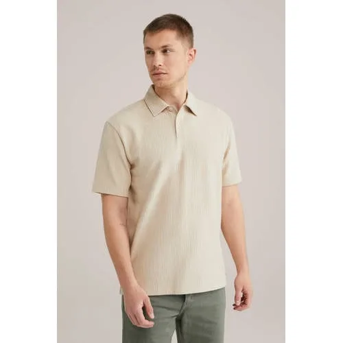 WE Fashion relaxed polo met ingebreid patroon beige Prijzen