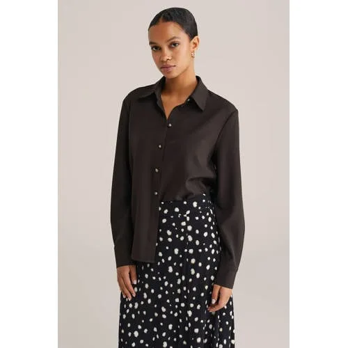 deze WE Fashion satijnen damesblouse met lange mouwen heeft een gladde, licht glanzende uitstraling en een tijdloze effen kleur. De klassieke kraag en rechte mouwen geven een verzorgde look, terwijl de knoopsluiting aan de voorkant zorgt voor praktische eenvoud. De blouse is gemaakt van 96 procent polyester en vier procent elastane, wat zorgt voor een soepele stof die prettig meebeweegt.Verzorgde details voor elke dag Effen satijnlook voor een rustige en stijlvolle uitstraling Klassieke kraag voor een nette, georganiseerde bovenkant Lange rechte mouwen met comfortabele pasvorm Knoopsluiting aan de voorkant voor eenvoudig aan en uit kleden Zonder borstzakken voor een strak en rustig vooraanzicht Elastane in de stof voor lichte stretch en extra draaggemakVan werkdag tot avondmomentmet deze blouse stap je moeiteloos van een drukke werkdag naar een etentje of een afspraak in de stad. De effen kleur laat zich makkelijk combineren met een nette broek of een rok en sluit goed aan bij zowel formele als ontspannen momenten. De satijnlook voegt subtiel wat extra verfijning toe aan je outfit.Stijl en betrouwbaarheid van WE FashionWE Fashion staat voor toegankelijke mode met een moderne uitstraling. Het merk richt zich op goed doordachte basics en items met een herkenbare stijl, zodat je eenvoudig een complete garderobe samenstelt. De aandacht voor pasvorm en materiaalkeuze zorgt voor kleding die je vaak en graag draagt.een blouse die elke dag weer een verzorgde basis in je kledingkast vormt.