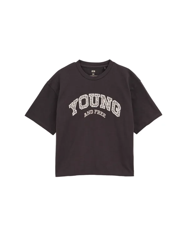 Materiaal: Jersey; Halstype: Boothals; Motief: Tekst print; Details: Borduursels; Pasvorm: Wijde pasvorm; Armlengte: Halve mouw; Lengte: Normale lengte